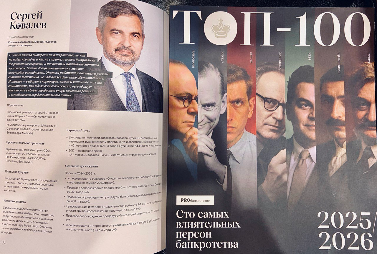 Сергей Ковалев вошел в Топ-100 Самых влиятельных персон банкротства 2025/2026 по версии PROбанкротство.