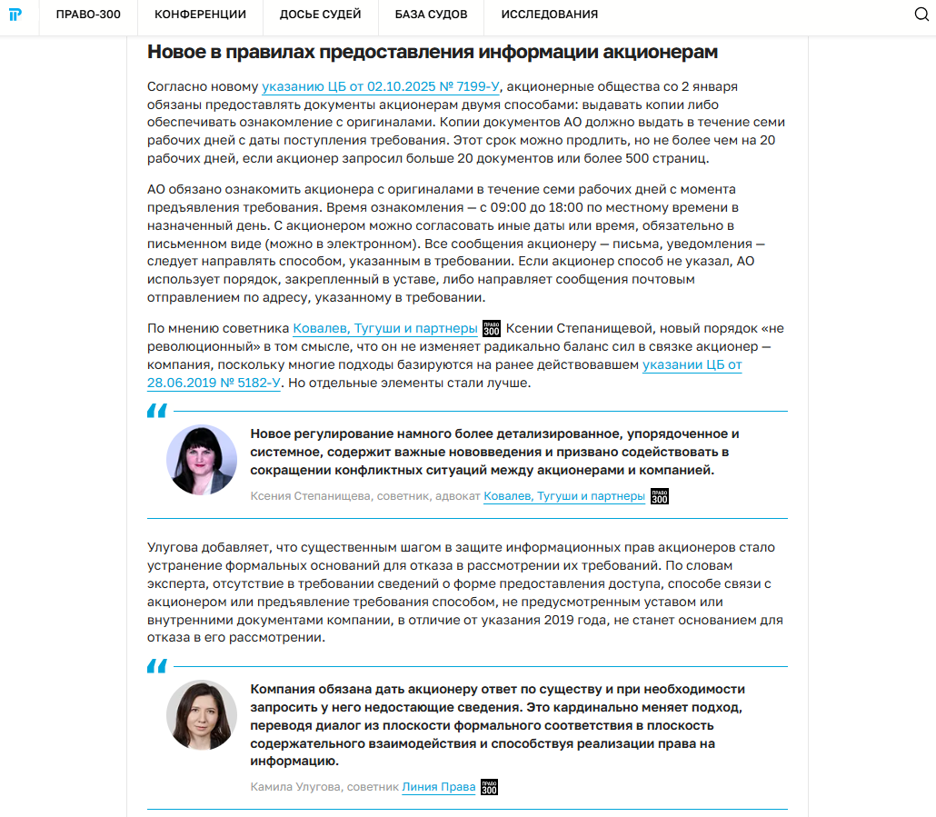 Другие мнения о новых в правилах предоставления информации акционерам в материале Право.ру